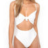 Maillot de bain une pièce avec nœud, ouvert sur le devant.